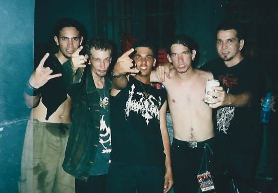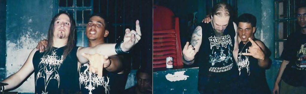 Aureliano e a banda Anthropophagical Warfare, no show do Enthroned. Na foto, também o brother Osvaldo (à direita). Foto compartilhada por Aureliano.